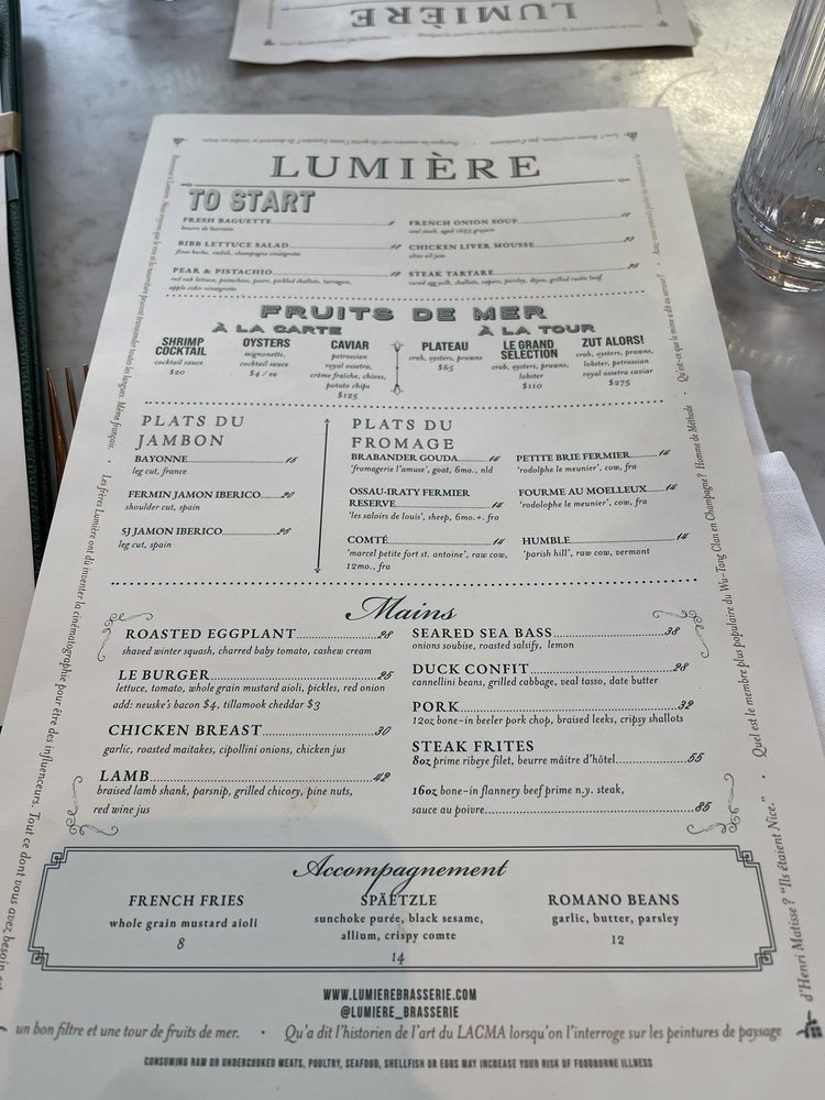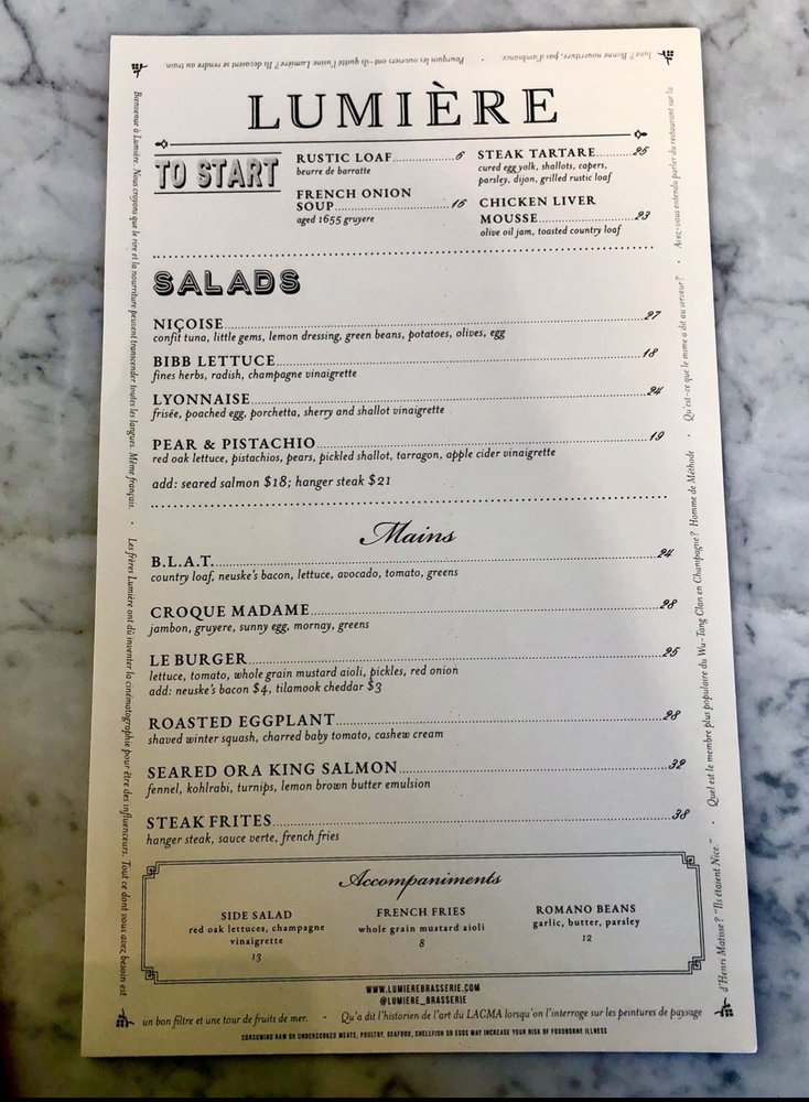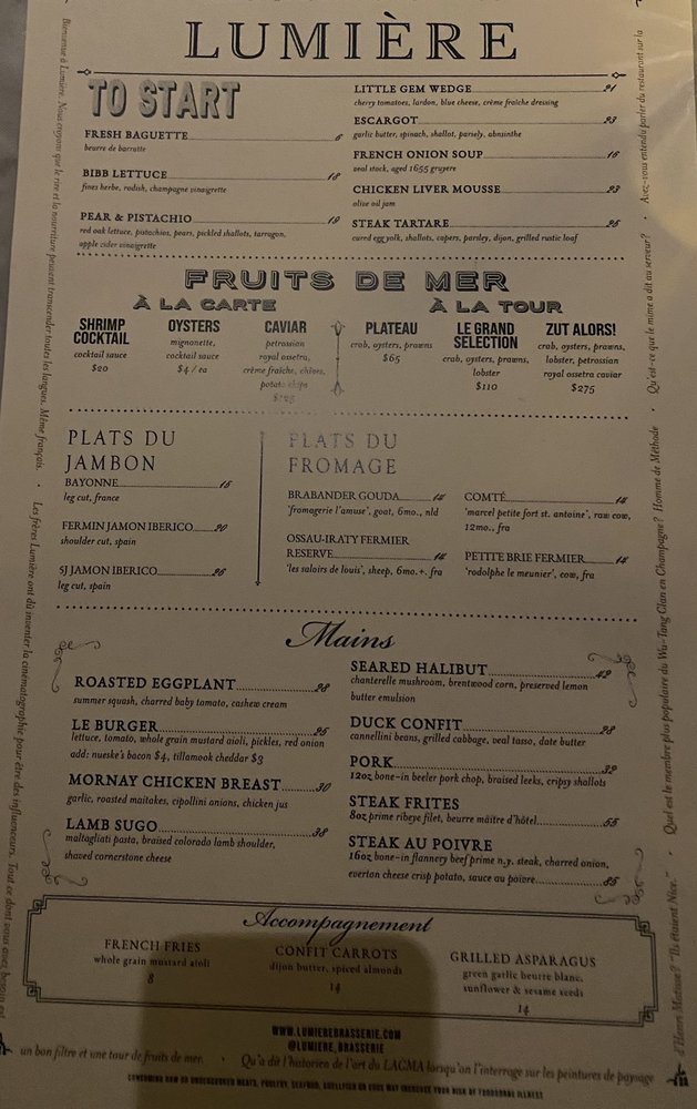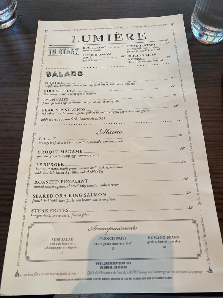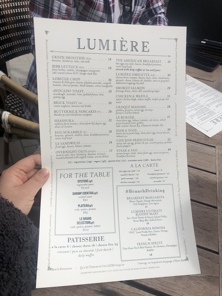 Introducing Lumière Brasserie, a French restaurant located at 2025 Avenue Of The Stars Los Angeles, CA 90067. Known for its spacious and elegant ambiance, Lumière offers a variety of amenities including valet parking, outdoor seating, and a full bar. The menu boasts dishes like chicken liver mousse, house-made bread with French butter, and the perfect chicken wings, as acclaimed by a connoisseur. The croissants are buttery and crisp, while the pistachio strawberry pastry is a delicious treat. With excellent service and unique food offerings, Lumière Brasserie provides a memorable dining experience. Whether celebrating a special occasion or seeking a cozy brunch spot with live music, Lumière Brasserie promises to impress with its sophisticated French cuisine and inviting atmosphere.